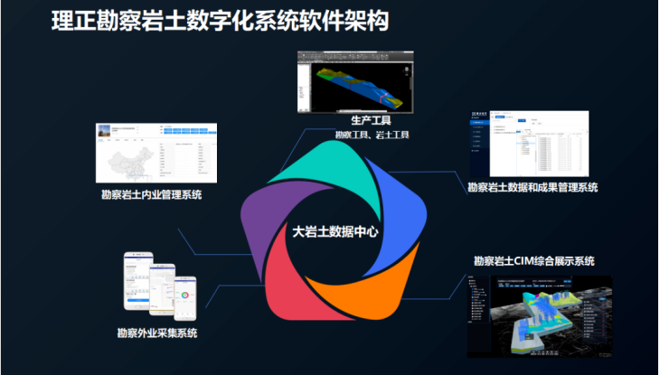 理正勘察岩土数字化系统是由北京理正自主研发的岩土勘察专业工作流程全数字化、智能化的系统。本系统融合了云技术、BIM、CIM等多种数字化技术手段,以大岩土数据中心为核心,实现勘察生产前期准备、勘察外业、室内试验、内业整理、数字化交付、综合展示、成果管理查询、历史资料再利用等勘察全过程数字管理。