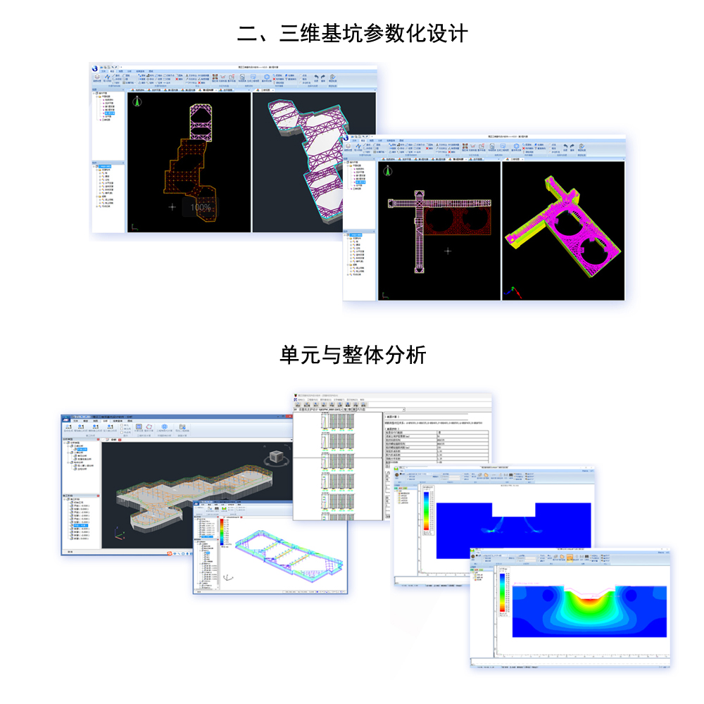 软件基于自主可控的理正土木工程三维建模图形平台,依托正向BIM设计理念,从接入上游三维地质数据,到基坑三维建模设计、单元分析与整体分析,最终生成施工图与工程量统计,同时支持数字化成果交付,可进行基坑项目轻量化展示以及为下游基坑监管提供数据支持。