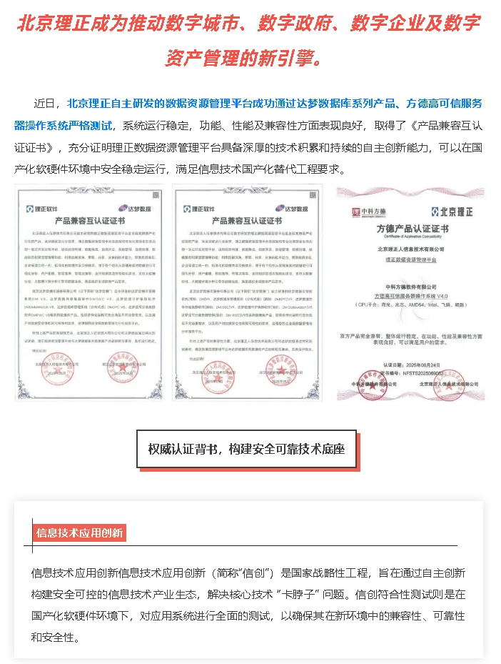 理正数据资源管理平台通过信创认证,自主创新能力再获权威认可!