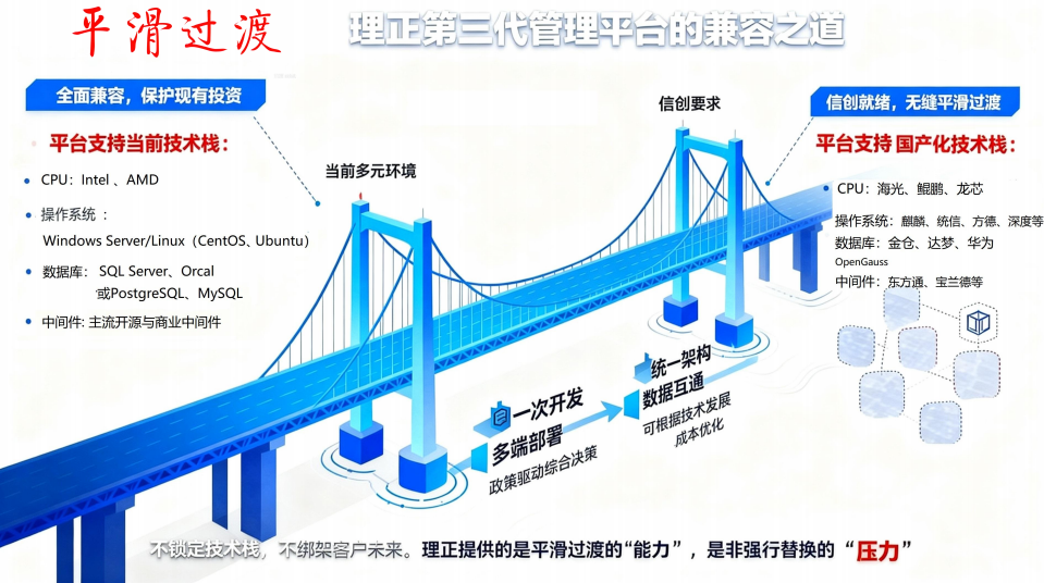 对此,理正第三代信息化平台以"软件生产线"式积木组装架构和信创全栈适配能力为核心,支持分期分批平滑迁移,保障业务数据连续性与完整性。