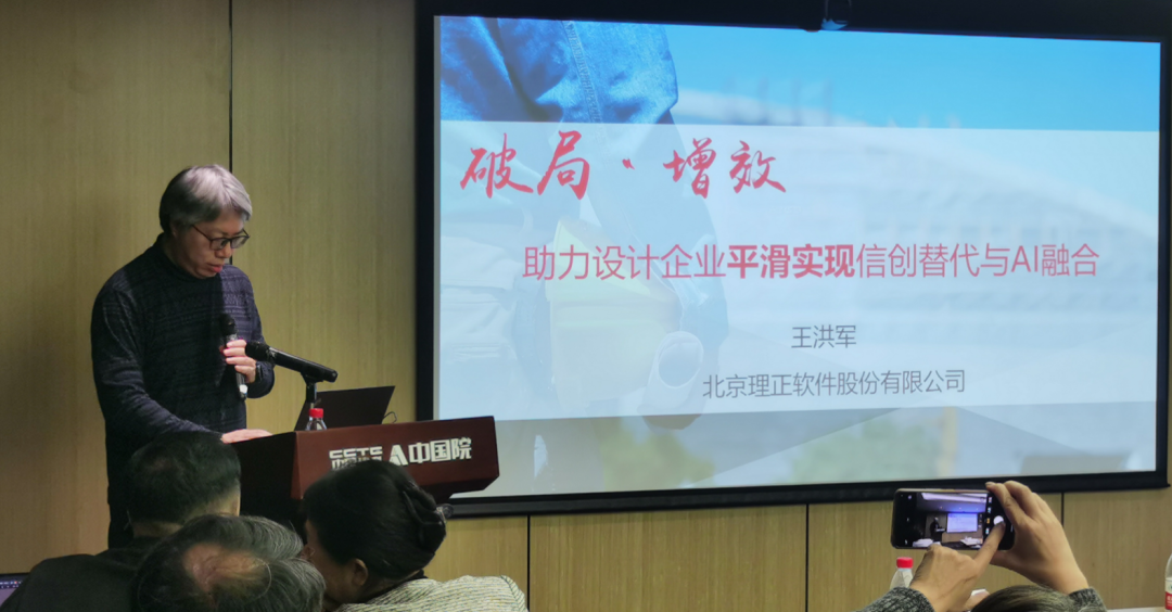 主题分享环节,北京理正软件股份有限公司副总经理王洪军分享了"破局·增效——助力设计企业平滑实现信创替代与AI融合"的落地方案。